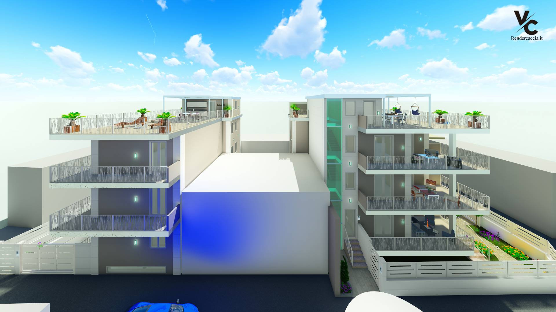 Il cantiere, in fase di lavorazione, prevede la costruzione di sei appartamenti totali, su tre piani. I diversi appartamenti potranno essere acquistati con pertinenza di giardino o terrazzo