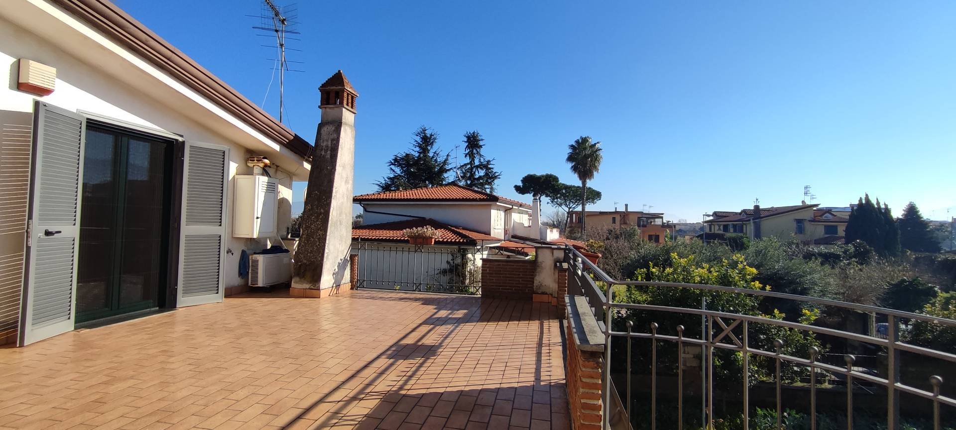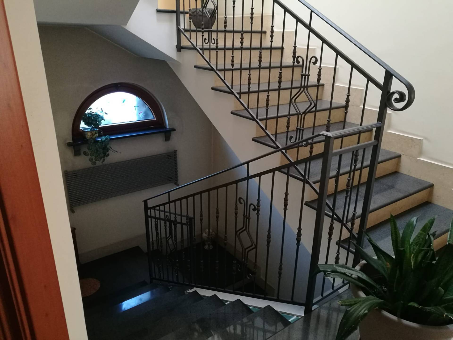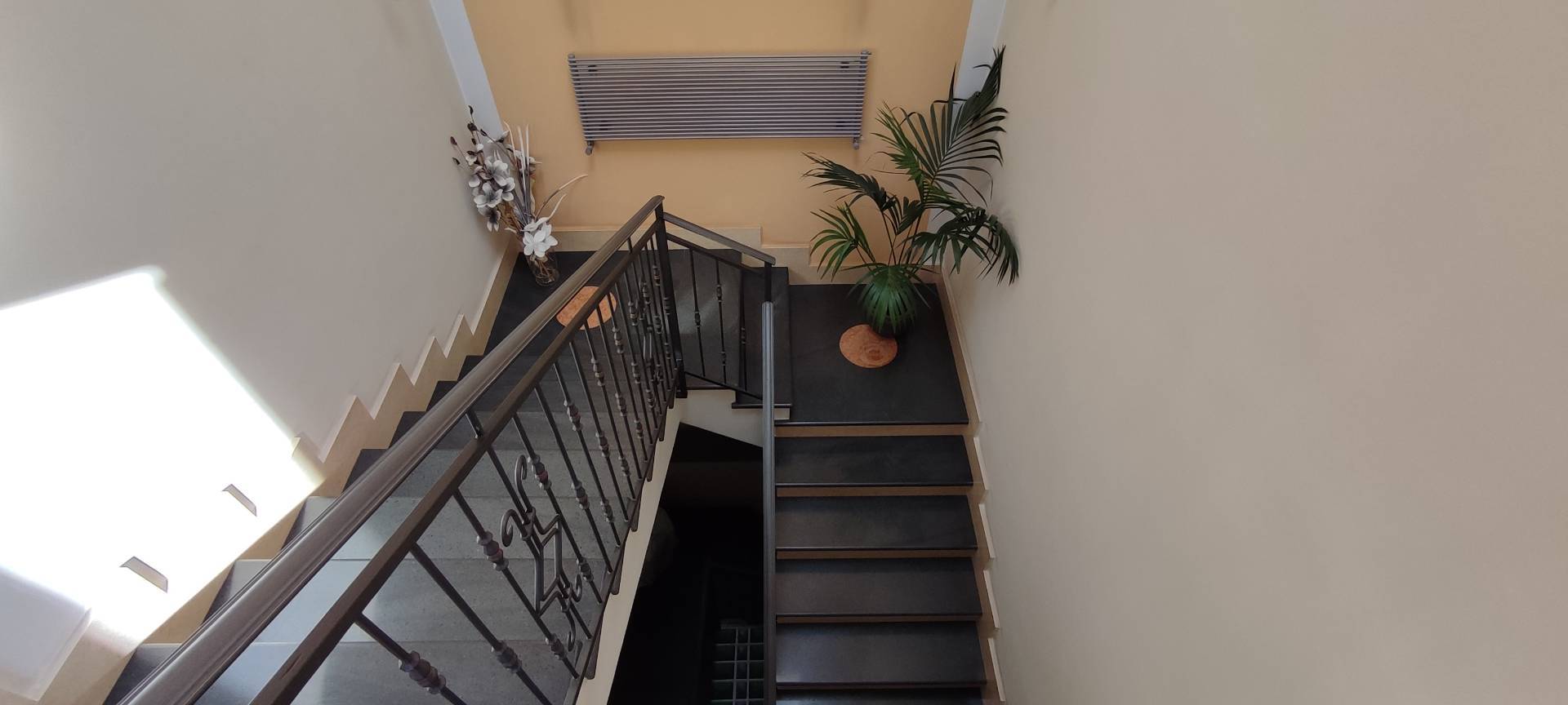all'accesso al terrazzo a livello di 40 mq abbiamo un lucernario automatico che permette l'ingresso della luce sia al primo piano che nel vano scala. Il piano semi interrato con accesso carraio è suddiviso in box auto doppio e ampio