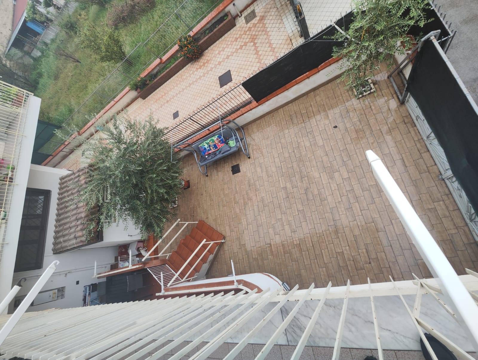 Lo stabile, comprende, anche nella Vendita, lastrico solare , piano seminterrato , area esterna pavimentata , tre posti auto coperti e giardino .
